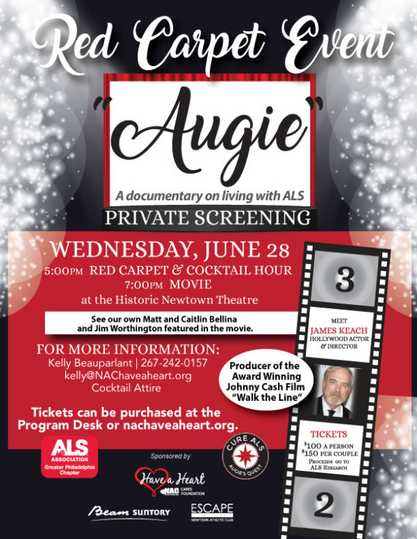 The NAC Have a Heart Foundation is hosting an invitation only private movie screening of the movie “Augie” on Wednesday June 28, 2017 at the historic Newtown Movie Theatre. The film is a documentary study produced and directed by the Hollywood actor and filmmaker James Keach. James Keach produced the Johnny Cash award winning film “Walk the Line” among other winning projects. Mr. Keach will be coming in from Hollywood to attend the film to meet guests and host a Q and A presentation along with the viewing of the film.